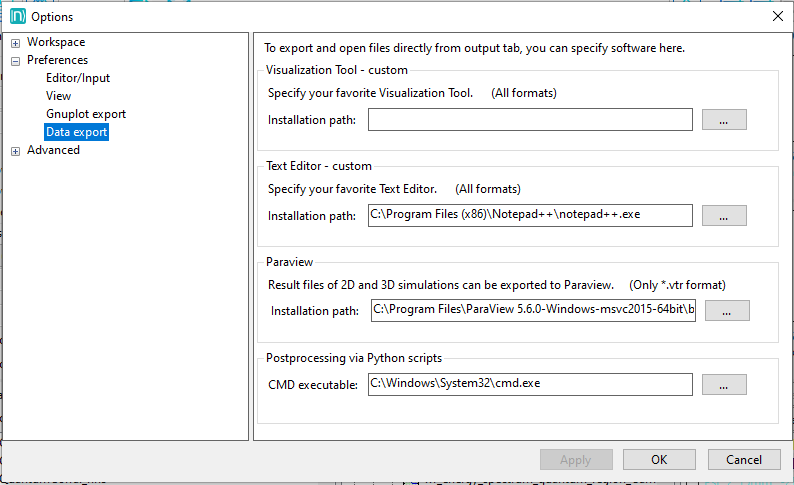 - write the path to the ParaView executable in your computer,