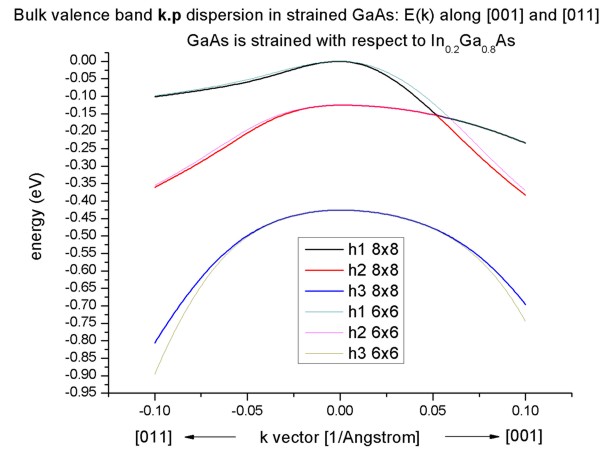 k.p dispersion in bulk GaAs (strained / unstrained)