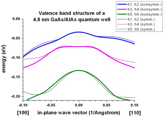 symmetrized k.p Hamiltonian can be seen. (See also the discussion in