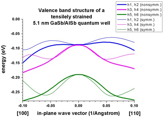 b) Tensilely strained GaSb/AlSb quantum well