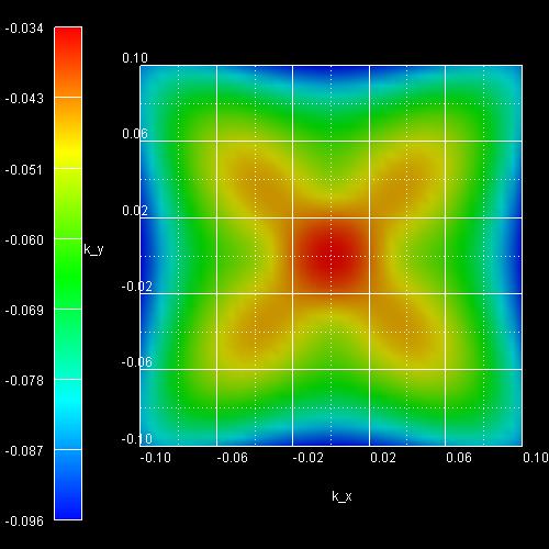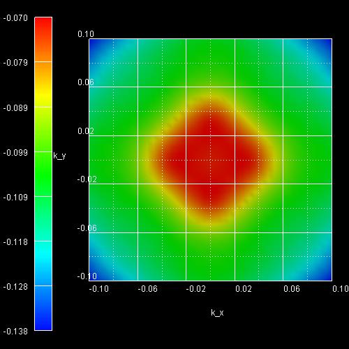 The x axis shows the kx value between - 0.10