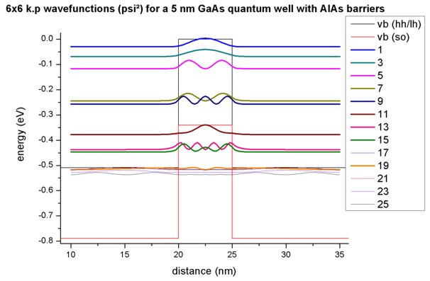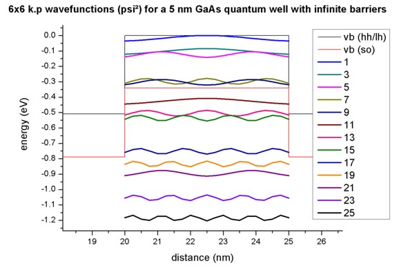 The following figure shows the lowest 26 eigenstates obtained with 6-band k.p