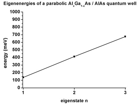 • One should bare in mind that the energy level spacing of such parabolic quantum wells is inversely proportional to both the well width and the square root of the effective mass.