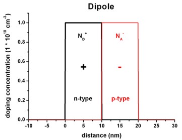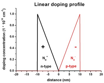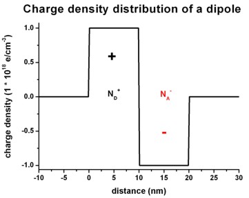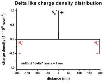 - at the boundaries of the structure there are constant negative charge densities of width 1 nm each (resulting from ionized acceptors NA-).