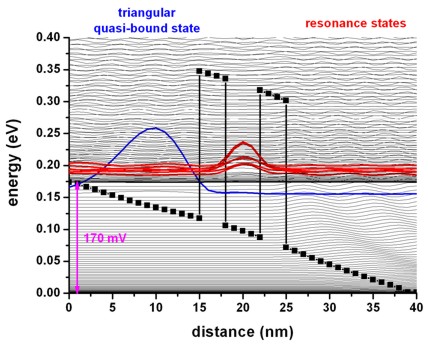 profile of the GaAs/AlGaAs resonant tunneling structure plotted at the resonant