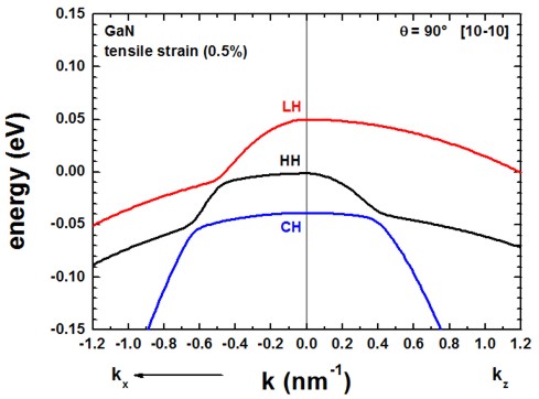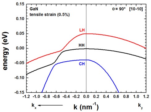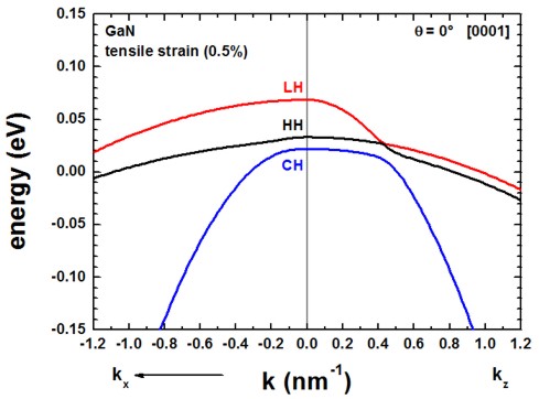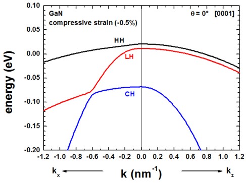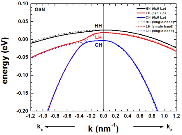 The following figure shows the bulk k.p dispersion of unstrained GaN