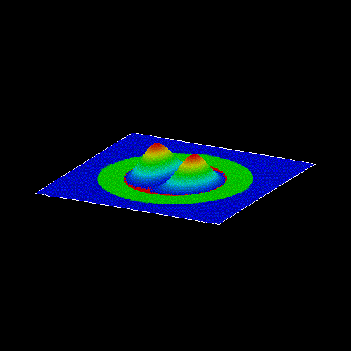 The following figures shows the square of the electron wave functions (i.e. psi²) of the corresponding eigenstates. They were calculated within the effective-mass approximation (single-band) on a rectangular finite-differences grid.